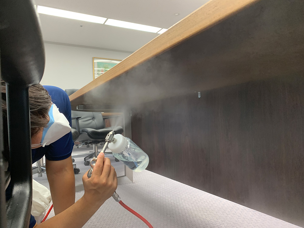 各自の対策はもちろん、もっと大切なのは空間の対策ではないでしょうか。「エコキメラ」は1度の吹き付けで抗ウィルス、抗菌、消臭効果を発揮。致します。